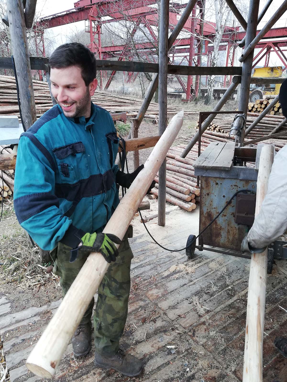 Kulatinu zpracováváme strojově - loupáním tak jako náš předchůdce. Kulatinu zbavíme kůry lýka a opatříme fazetou. Kůly jsou surové a na slabším konci garantujeme jejich minimální průměr dle ceníku.