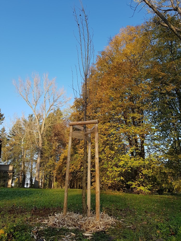 Opora stromů, opěrný kůl, ohrádka ke stromku, zavětrovací úvaz